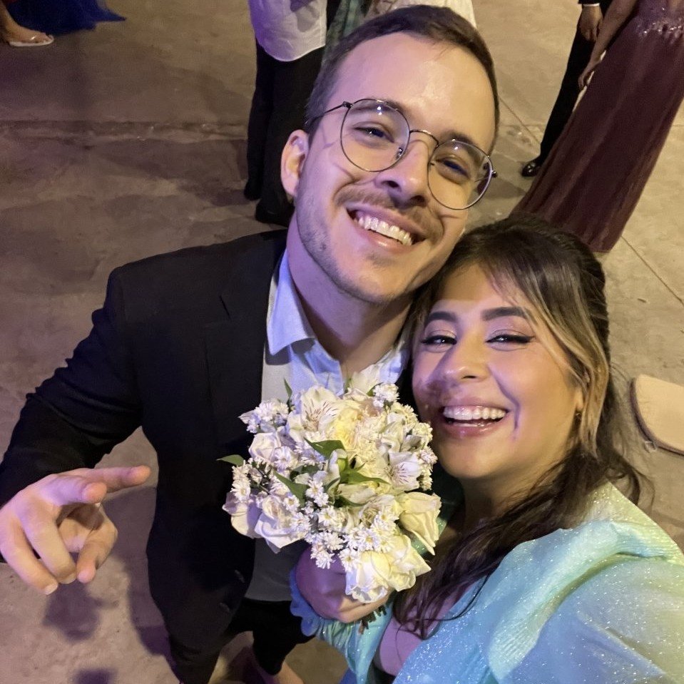 Nos conhecemos em abril de 2022, durante a formatura de uma grande amiga (Bruninha, te amamos!). Naquele dia, tudo se resumiu a um simples “Oi, boa noite, prazer” — e, claro, uma jogada de cabelo de Pri, que Lucas faz questão de mencionar até hoje. 💁🏻♀